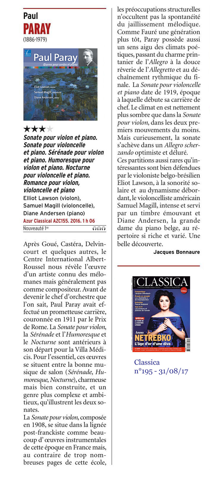 La critique: de Jacques Bonnaure pour Classica, sept. 2017