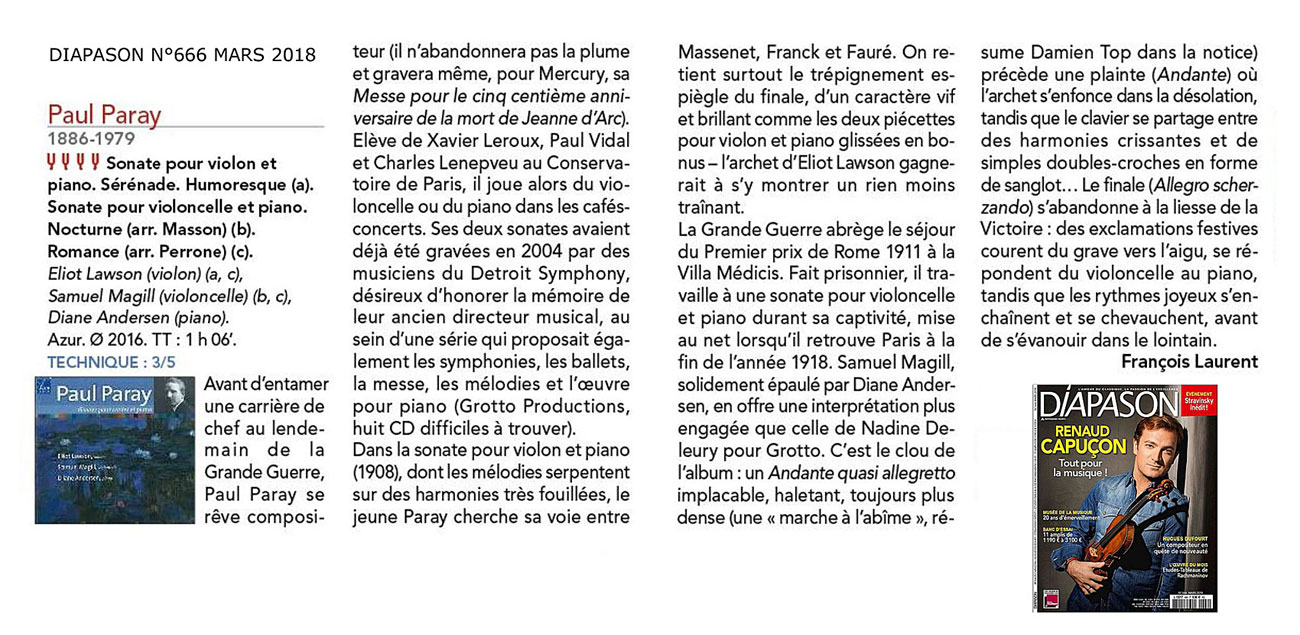 Review: by François Laurent for Diapason, March 2018